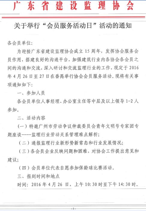 转发省监理协会关于举行“会员服务活动日”活