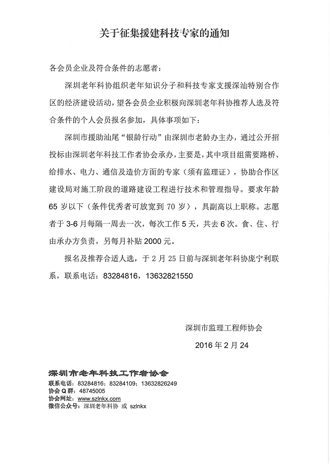 关于征集援建科技专家的通知
