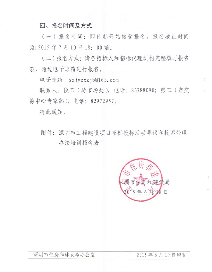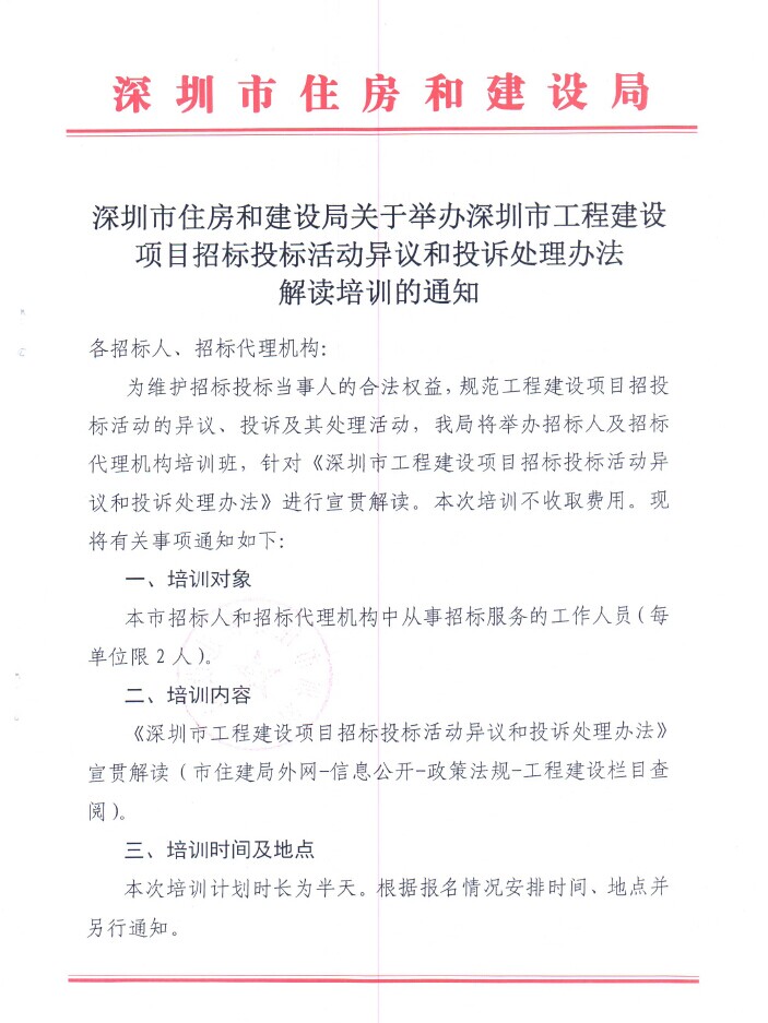 深圳市工程建设项目招标投标活动异议和投诉处理办法培训报名表