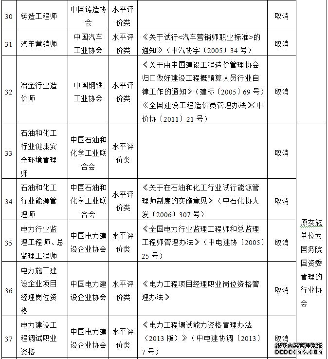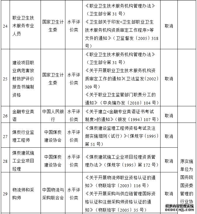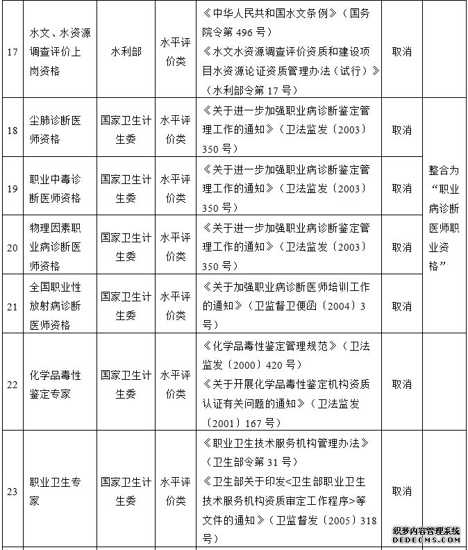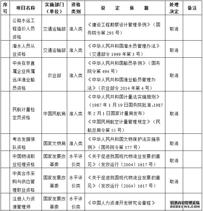 国务院决定取消的职业资格许可和认定事项目录